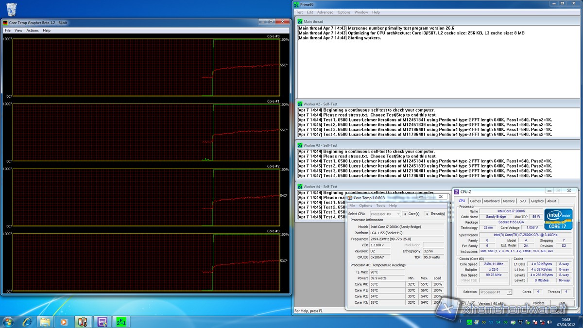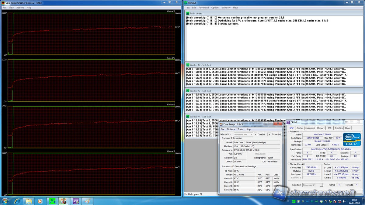 Vediamo di seguito i test temperature reallizati con lo Streacom FC8. I risultati emersi sono stati davvero molto interessanti. Per le nostre prove abbiamo usato il software di stress Prime95 e conseguentemente monitorando le temperature con il software CoreTemp. Le frequenze utilizzate ed i rispettivi valori di Vcore sono i seguenti: