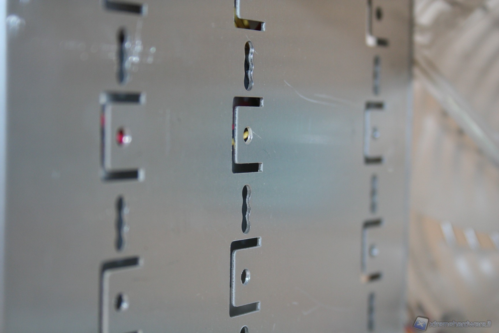 E’ molto bello, a livello estetico il suo frontalino in alluminio permetterà di elevare di molto la bellezza, e la particolarità, della porzione anteriore del nostro cabinet ; è molto gradevole la presenza di un led blu proprio sotto alle fessure d’aerazione frontali, direttamente sulla ventola da 120mm in immissione fornita nel bundle. Riportiamo foto dettagliate dell’unità :