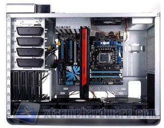 (*) Dato il fenomeno della pressione positiva gli slot PCI sono perforati per scelta, così facendo si impedirà comunque il potenziale ricircolo dell’aria calda all’interno della GPU per via del fatto che l’aria tenderà ad uscire, essendo sbilanciata l’immissione con l’estrazione all’interno del cabinet. Nel TJ09 invece sono state chiuse per via dell’assenza della pressione positiva, che aiuta a risolvere il problema del loop di ristagno che fa aumentare le temperature su cabinet orientati in configurazione classica, ma ovviamente in questo caso la situazione è decisamente diversa, essendo il piatto della scheda madre completamente ruotato.