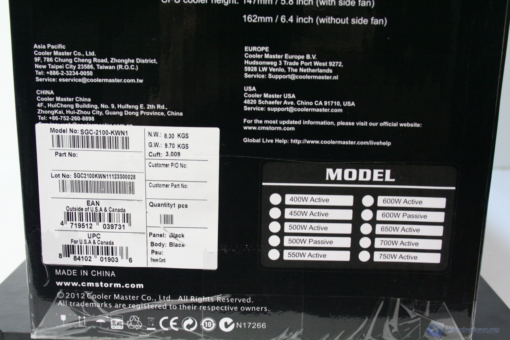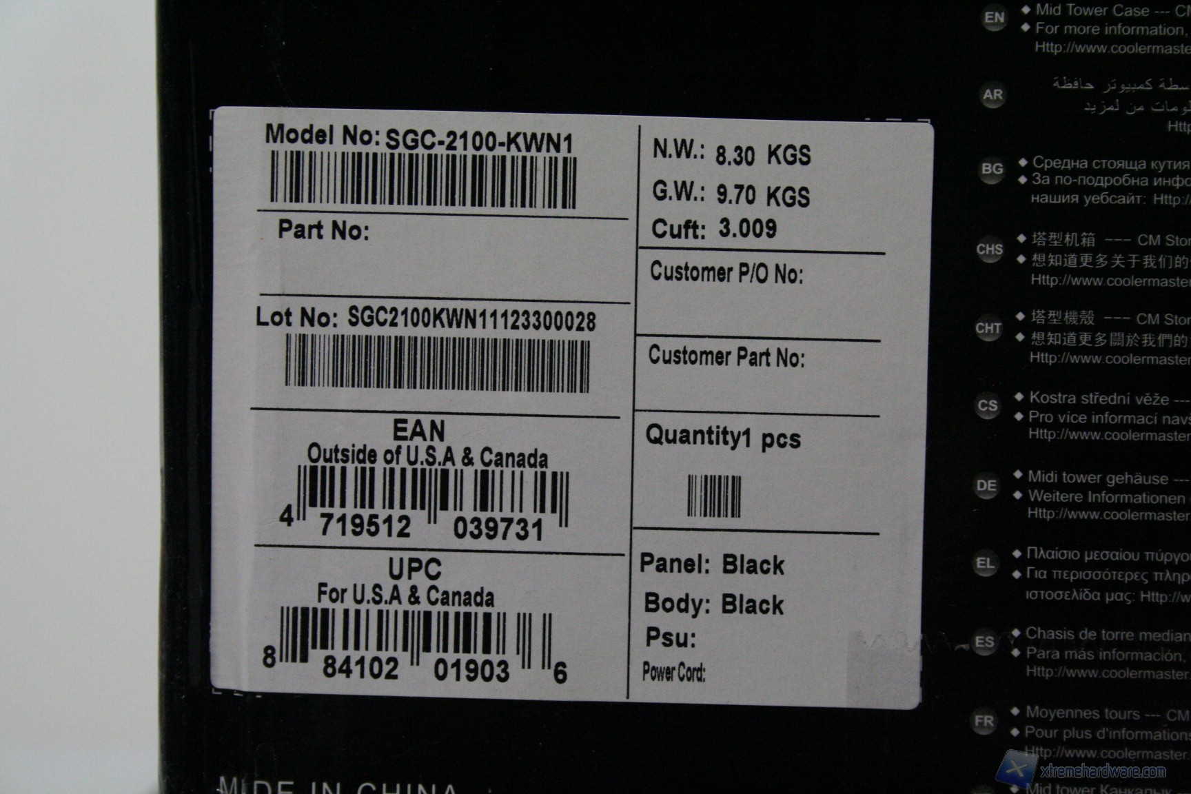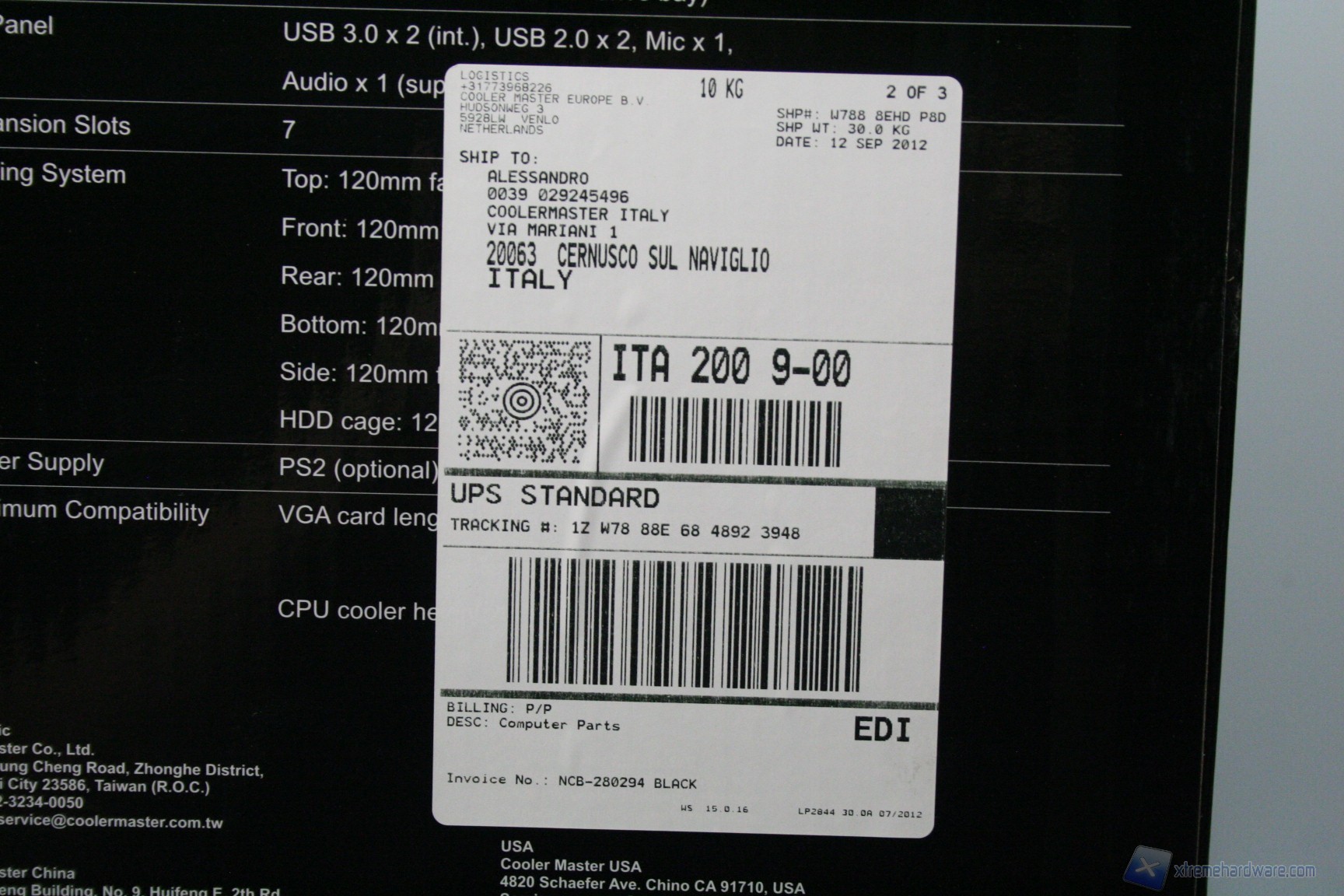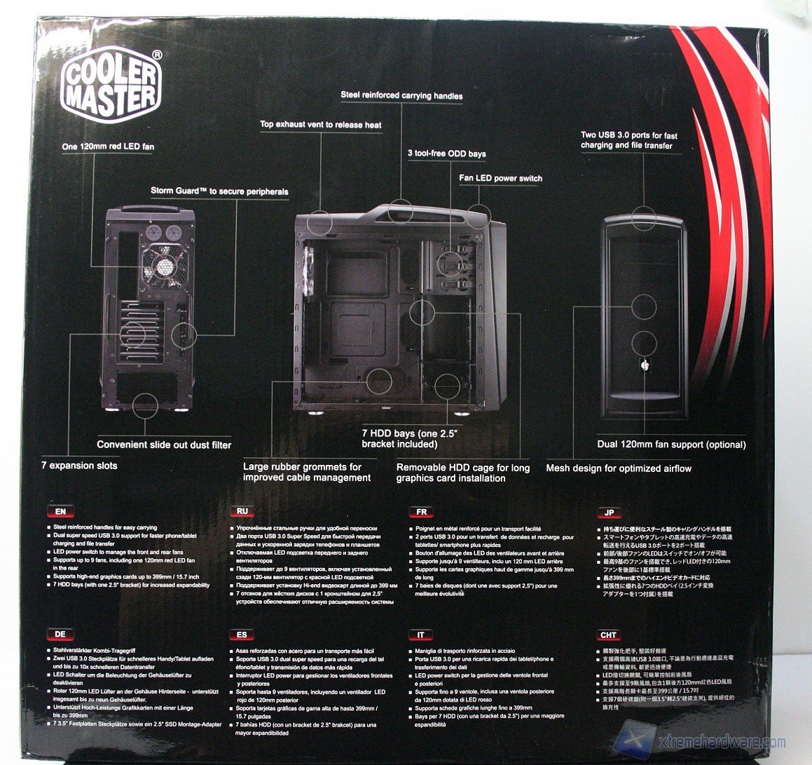 La confezione è classica, in stile CM Storm, con un buon numero di informazioni ed un ottimo imballo interno, caratterizzato da due distanziatori di polistirolo, più la classica bustina di plastica antigraffio.
