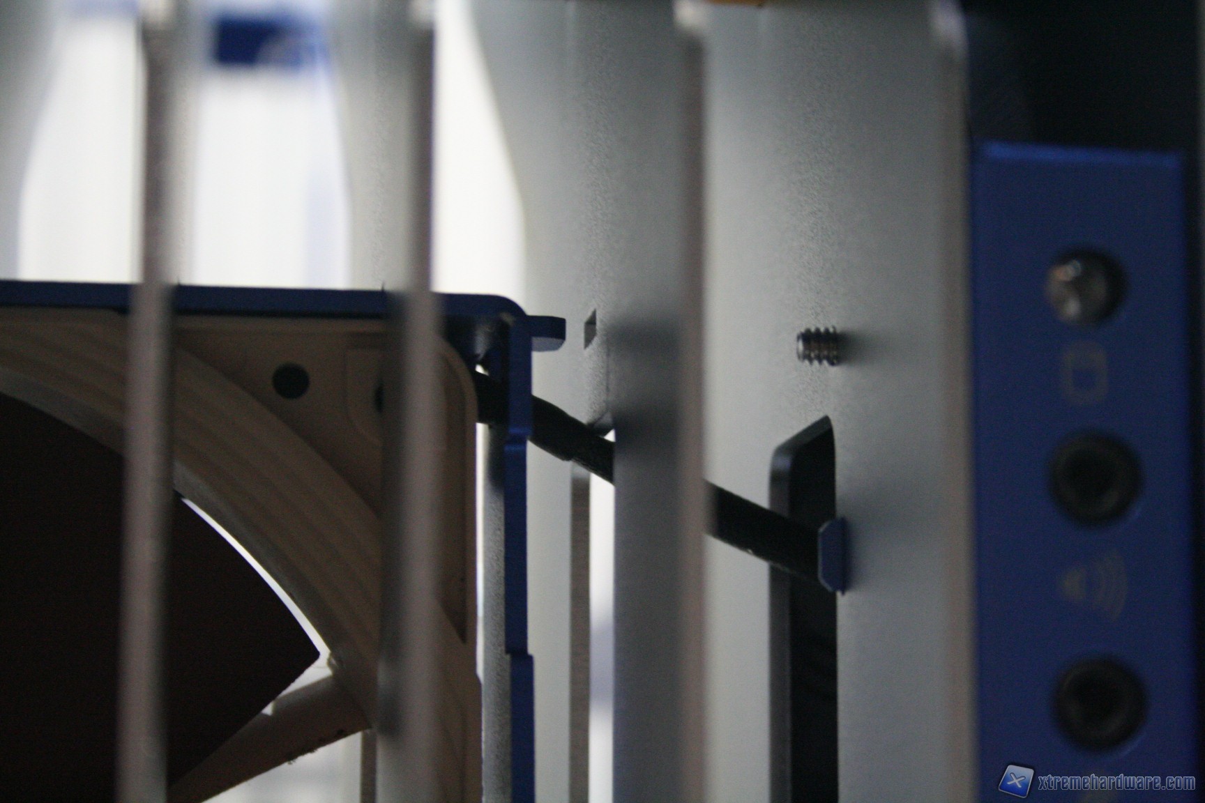 La dotazione del case è assente, relativamente alle ventole. E’ comprensibile? Sicuramente no, dato il prezzo di vendita. Sarebbe stato opportuno inserire almeno due ventole preinstallate, negli appostiti spazi. C’è da dire però che l’installazione di ventole aventi CFM moderati non porta a benefici tangibili, dati i risultati del test di carico. Come dissipazione accessoria troviamo due cage removibili per ventole da 120mm, che presentano un sistema di aggancio identico a quello dei dischi rigidi. Vi mostriamo alcune fotografie: