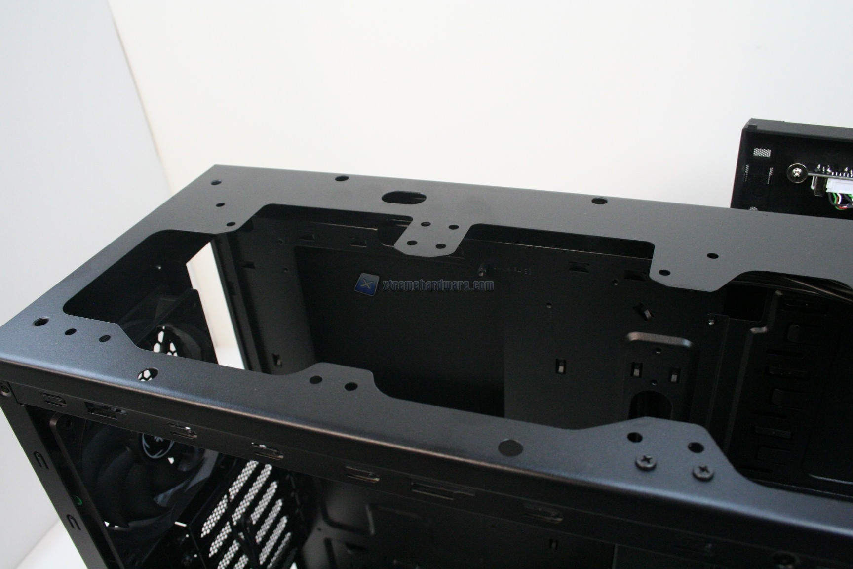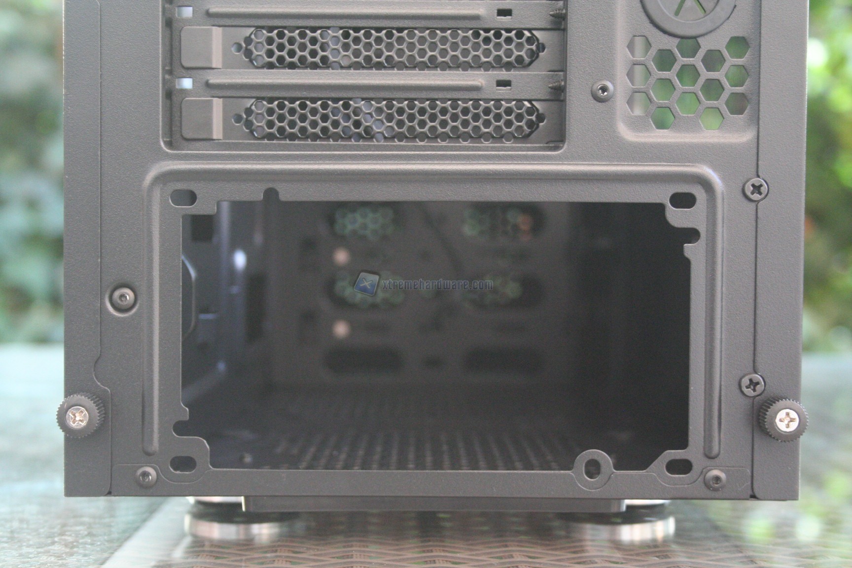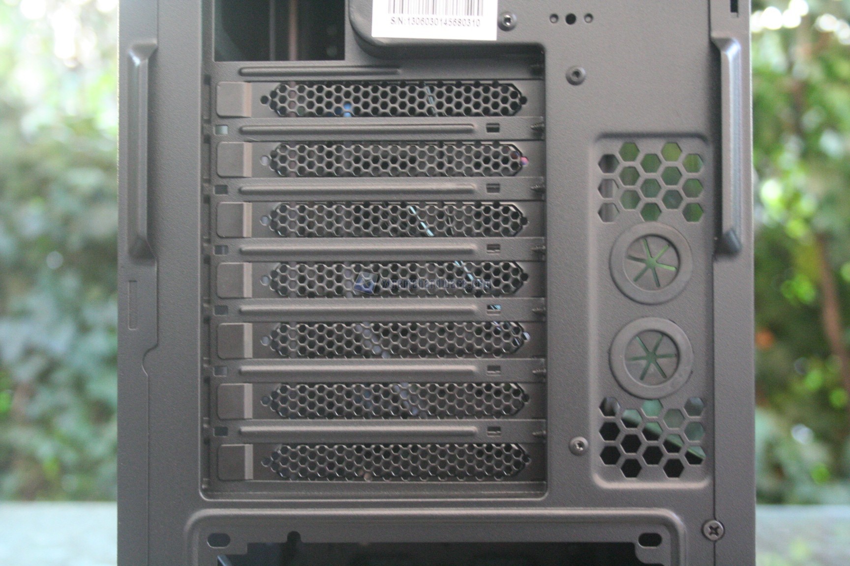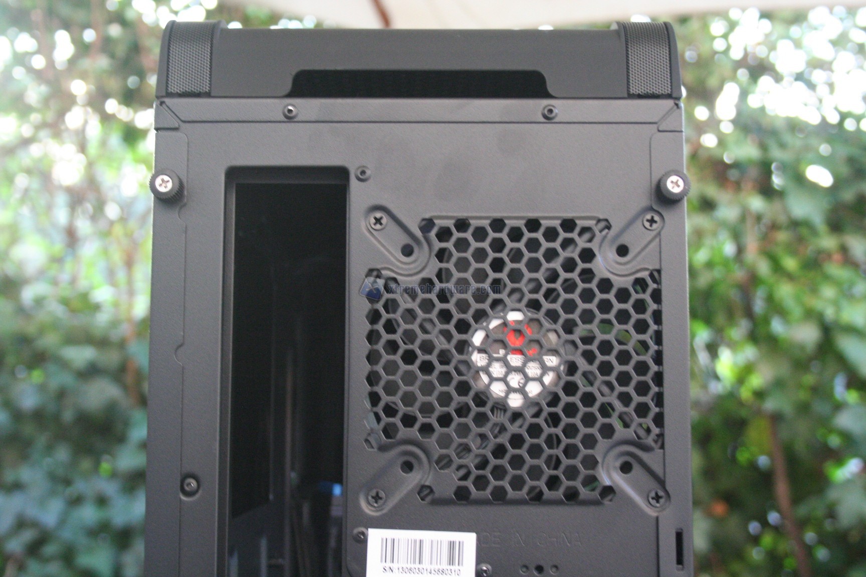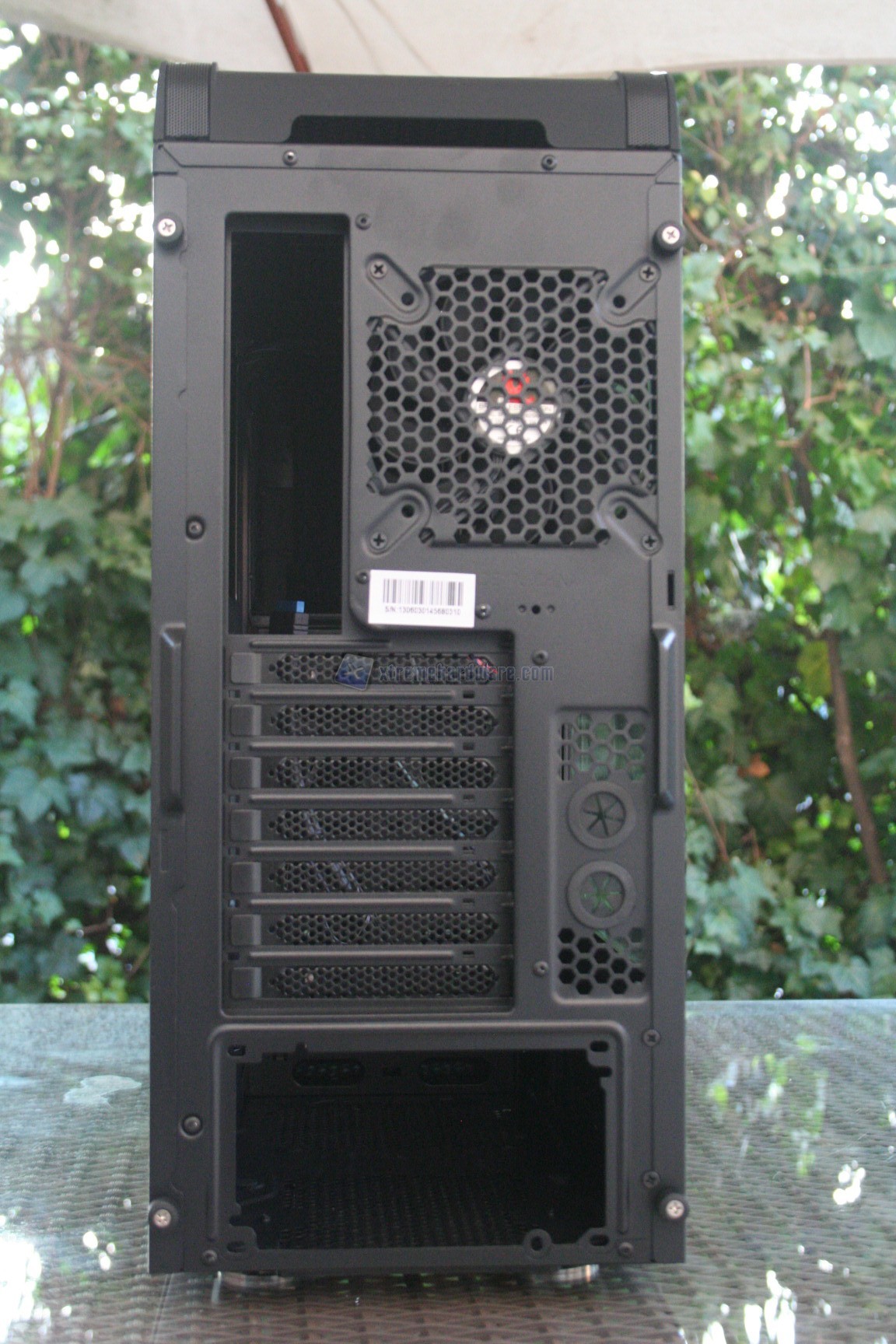 La configurazione è classica, quindi non ci dilunghiamo in descrizioni inutili. Da menzionare la presenza di due ottimi fori passa-tubazioni a liquido, nella parte destra. Nella parte superiore possiamo osservare il foro per la rimozione del pannello superiore. E’ un peccato che non possa montare ventole posteriori da 140mm, quindi consigliamo di inserire questa possibilità nelle prossime revisioni.