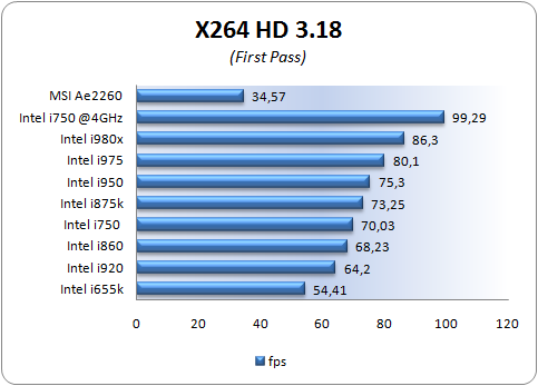 Il benchmark x264, del quale è possibile scaricare una copia a questo indirizzo, permette di valutare quanto velocemente il proprio sistema possa convertire un flusso video da 1280x720 pixel di risoluzione in un file x.264 ad alta risoluzione.