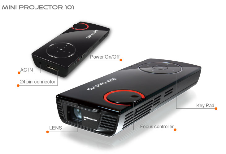 Le sue ridotte dimensioni lo rendono un oggetto molto pratico da portare in giro, leggero e compatto, dotato di 5 pratici pulsanti sul fronte che permettono di navigare all’interno del menù. Sempre nella parte alta del proiettore è presente una ghiera per la messa a fuoco manuale dell’immagine.