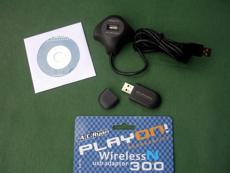 In redazione è giunto anche il kit wireless dedicato (costituito da chiavetta USB con prolunga e cd per i driver) che permette al lettore la condivisione di qualsiasi tipo di file in rete e l'accesso a internet con la possibilità di utilizzare anche il client BitTorrent. E’ importante sottolineare il fatto che la chiavetta usb può funzionare tranquillamente su qualsiasi pc per accedere alla rete come una comune penna Wi-fi. E’ inoltre configurabile come access point e non è quindi vincolata al solo utilizzo con il Playon!HD.