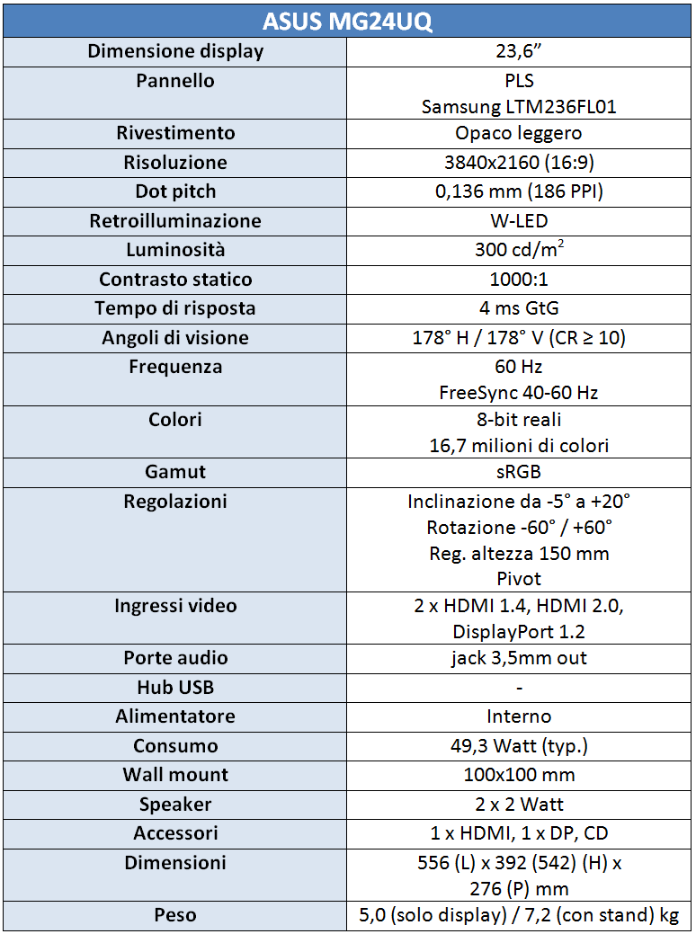 Per quanto riguarda il pannello adottato, sul sito ASUS e nei comunicati ufficiali, viene indicato solo che si tratta di un IPS, senza entrare nel dettaglio. Trattandosi però di un LCD da 23,6”, potrebbe trattarsi del modello PLS  LTM236FL01 di produzione Samsung.
