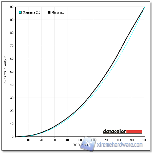 Soddisfacente è il range di luminosità che va da un minimo di 39 cd/mq a un massimo di 307 cd/mq. La copertura dello standard sRGB è del 100% e per quello Adobe è del 79%. Non vi è un’impostazione che permette di agire sul valore del gamma, ma quello utilizzato fa registrare il valore ottimale di 2,2.