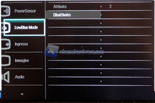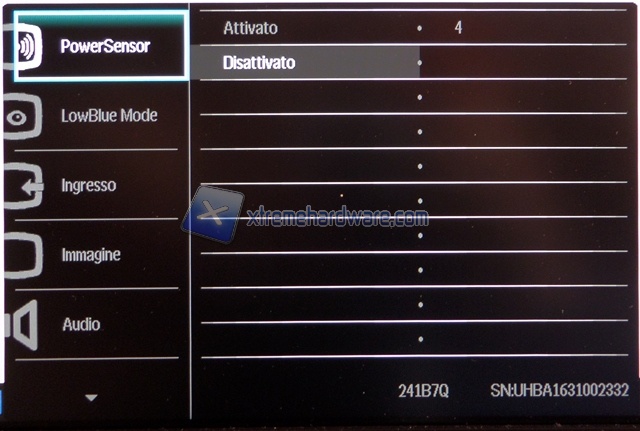 Il primo tasto a sinistra permette di scegliere una delle modalità SmartImage; Ufficio, Foto, Film, Gioco, Risparmio energetico, Low Blue Light (settabile su più livelli) e Disattivato. Il secondo permette lo switch del segnale tra le sorgenti video, mentre il terzo regola l’impostazione del PowerSensor (quattro livelli a seconda della distanza). Il quarto pulsante fa entrare nel menù completo e l’ultimo gestisce l’alimentazione.