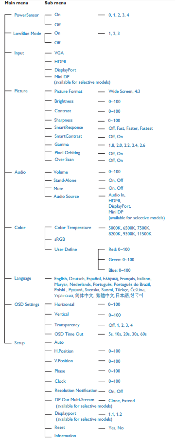 Philips 241B7QPJEB - Funzioni del menù OSD