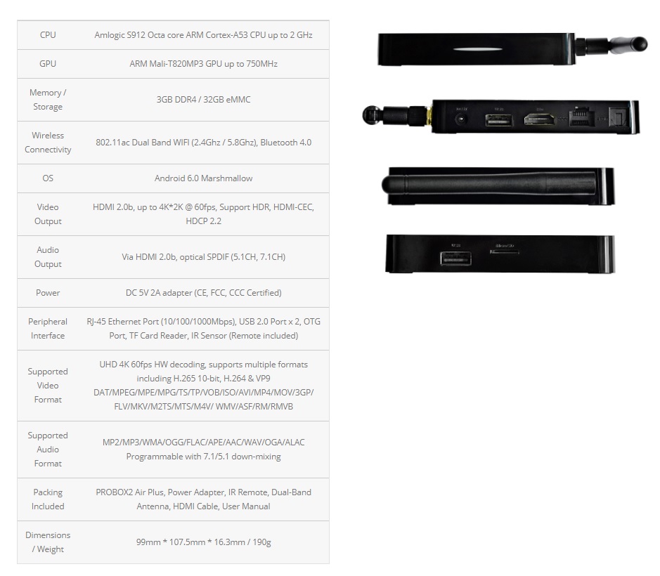 A seguire le specifiche tecniche del PROBOX2 Air Plus: