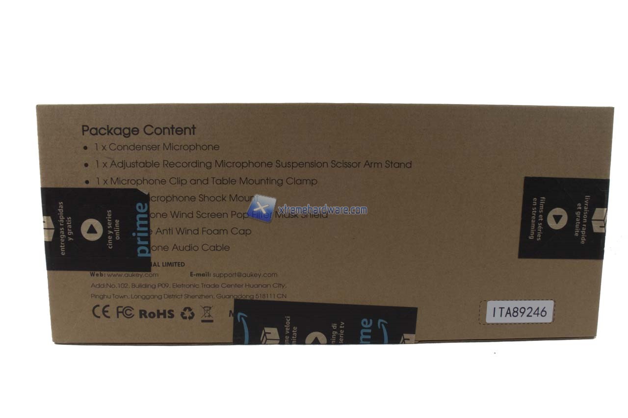 Il microfono AUKEY GD-D1 ci arriverà nella consueta confezione di cartone riciclato. Nella parte frontale troveremo il logo del brand mentre nel retro le principali specifiche circa il prodotto.