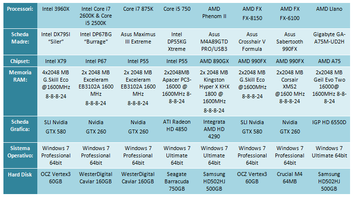 La CPU AMD FX-6100 sarà sottoposta a numerosi test nel corso di questa recensione, le piattaforme di test le potete leggere sulla seguente tabella: