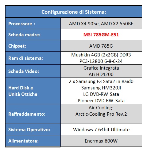 MSI 785GM-E51, Chipset 785G con HD4200 e DDR3 - Sistema di prova