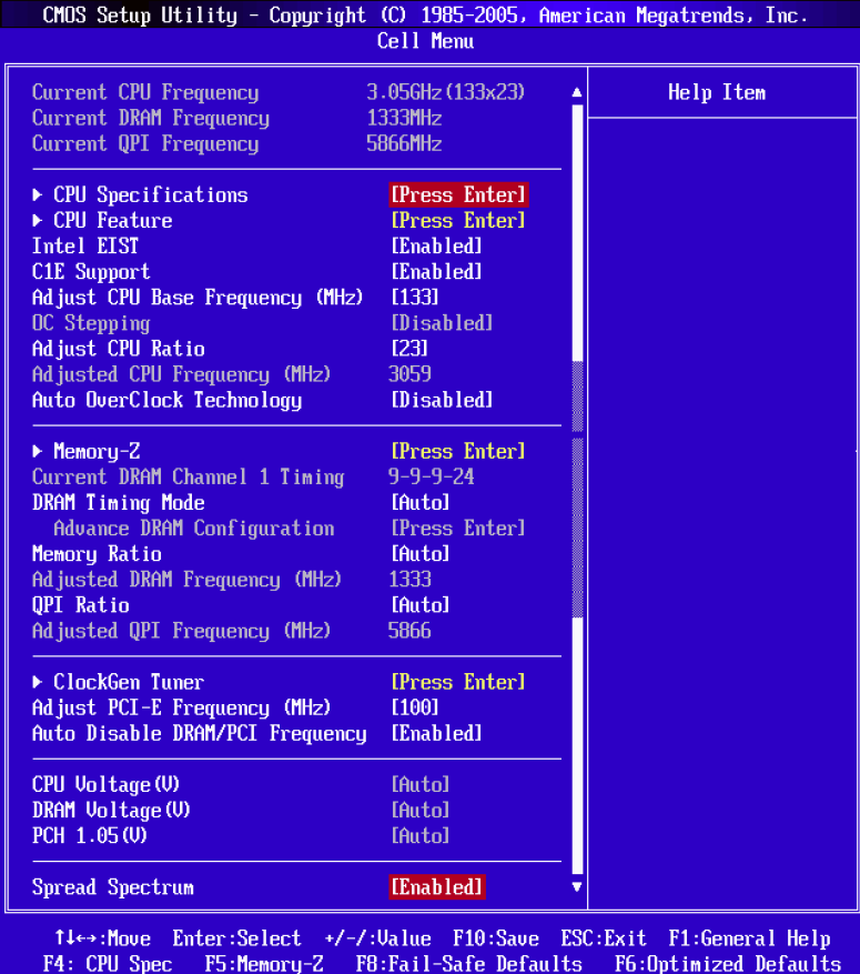 Il BIOS della scheda madre è di tipo “Fenix” della American Megatrends Inc. (AMI) e ci consente di variare una discreta quantità di parametri. In particolar modo per l’OC è possibile modificare il moltiplicatore, l’fsb, i timings delle ram, fissare i fix per PCI e PCI-Express e il voltaggi relativi alla CPU, RAM e PCH.