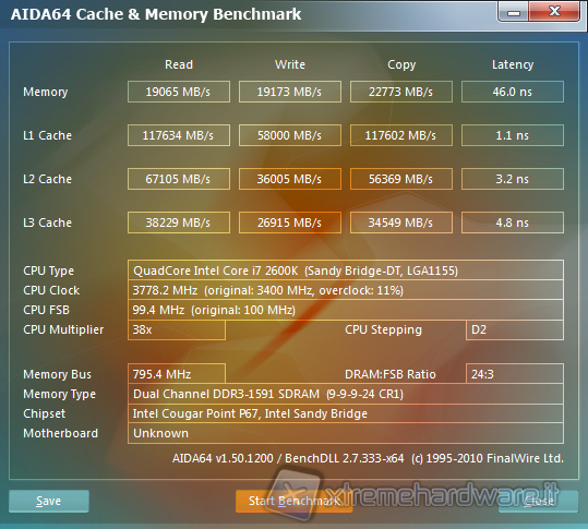 AIDA64 è l’ultima release dello strumento di test e controllo prodotto dalla FinalWire, il test effettuato in questo caso concerne il Memory Controller, le Memorie RAM e la cache della CPU.