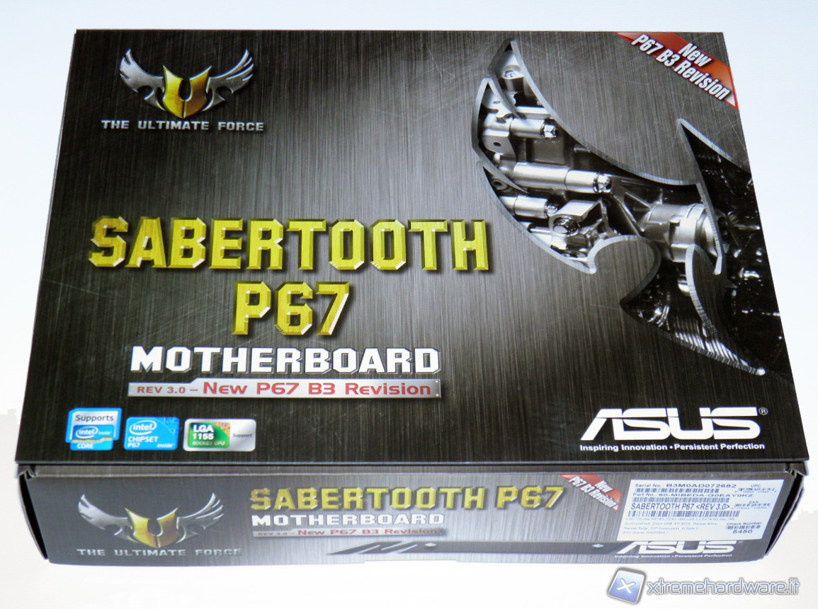 Presa in mano la scatola del prodotto, si sente subito un discreto peso, segno dell'alta qualità della scheda. Sul fronte della confezione spicca subito in alto il logo TUF, sul retro sono invece riportate le caratteristiche tecniche della scheda. La scatola, inoltre, presenta un'apertura della parte frontale come un libro, che riprende le features importanti della scheda descrivendole. Non è visibile direttamente l'hardware come in altre scatole di schede madri di fascia alta.