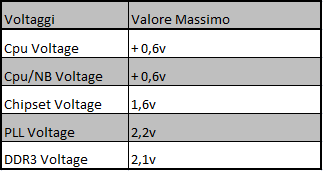Il BIOS permette inoltre di monitorare i voltaggi della CPU e delle DDR3.