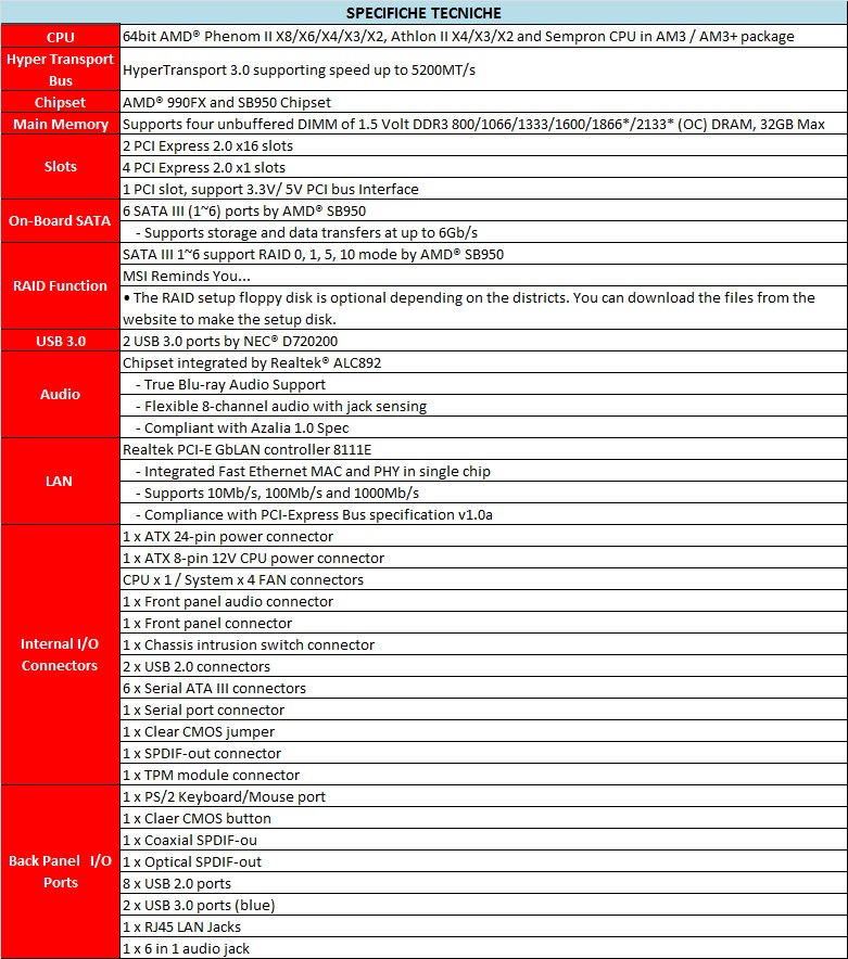 MSI 990FXA-GD65, una ottima scheda madre AM3+ in attesa di Bulldozer - Specifiche Tecniche