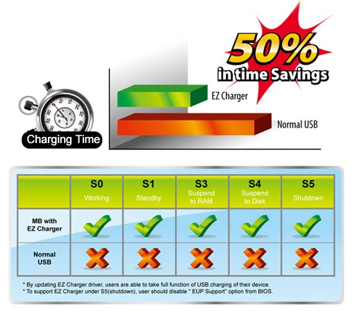 L’EZ Charger Technology riduce incredibilmente i tempi di ricarica dei vostri apparecchi USB.