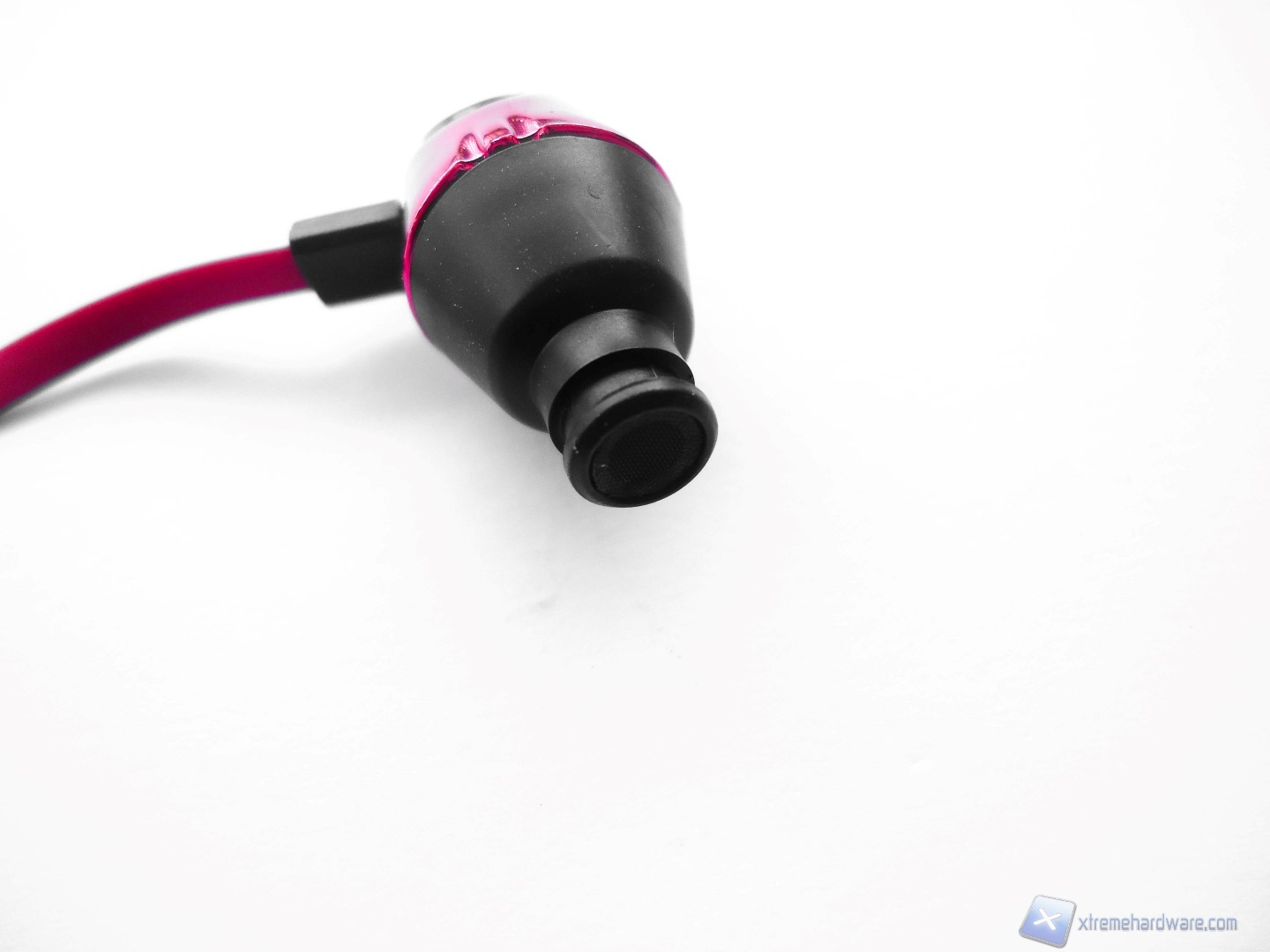 Ora passiamo all’analisi costruttiva e qualitativa di queste Mars Gaming MIH2. Togliendo le MIH2 dalla confezione notiamo che sono riposte all’interno di una custodia rigida, per evitare che si danneggino durante il trasporto. Una volta tolte anche da quest’ultima protezione, notiamo il colore rosso metallizzato delle cuffie, accompagnato da alcune parti caratterizzate dal nero opaco. L’auricolare è realizzato completamente in plastica, anche se la parte rossa è rifinita in modo da sembrare alluminio. Sulla parte laterale possiamo notare che sono riportate le lettere R o L che ci permettono di capire se teniamo in mano l’auricolare destro o il sinistro. L’altro lato delle cuffiette è completamente spoglie da scritte o altro, rimanendo pulito ed elegante. Togliendo il gommino auricolare notiamo che questa parte nascosta è realizzata in plastica di colore nero, un po’ economico alla vista, e che al di sotto dell’auricolare è presente un foro che serve per la soppressione dei fruscii e la noise cancellation. La retina metallica che protegge l’interno della cuffietta è ben realizzata e non presenta sbavature nell’assemblaggio.
