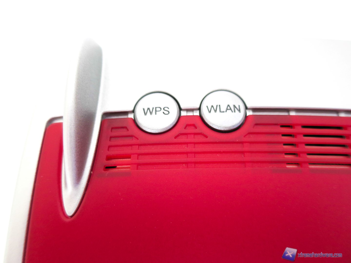 Dando uno sguardo più dettagliato alla parte superiore del FRITZ!Box 4020, troviamo nella parte destra la serigrafia del nome della serie di prodotti scelto da AVM mentre nella parte sinistra due tasti ‘’WPS’’ e ‘’WLAN’’. I due tasti ci permetteranno rispettivamente di avviare una connessione WiFi sicura e di attivare o disattivare il modulo WiFi nel caso sfruttassimo solo una rete cablata, priva dunque di dispositivi wireless.