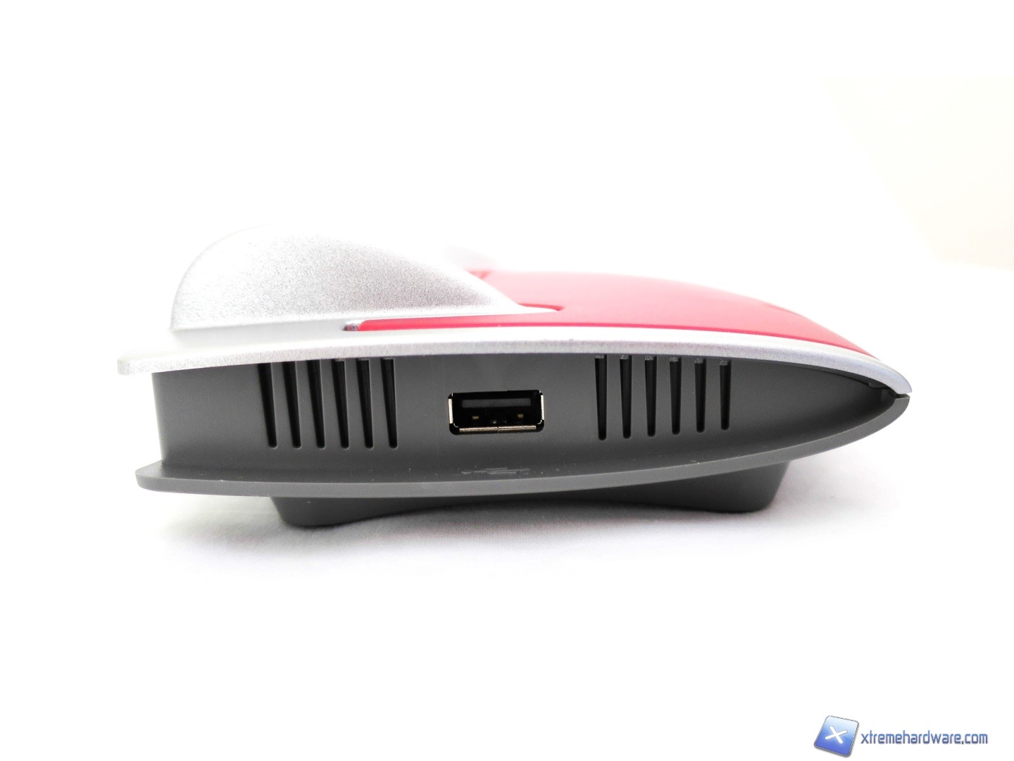 Spostiamoci ora ai lati del FRITZ!Box 4020 dove nel lato destro non troviamo nient’altro che i fori per il ricircolo di aria all’interno dello chassis del router mentre nel lato sinistro troviamo l’unica porta USB 2.0 presente sul router. Con tale porta USB potremo collegare Pen Drive, stampanti, Hard Disk esterni o Internet Key per il collegamento ad Internet. A seconda del dispositivo connesso potremo poi accedere sempre al pannello di gestione e sfruttare la funzione NAS o altre funzioni quali servizi FTP, SMB e così via.