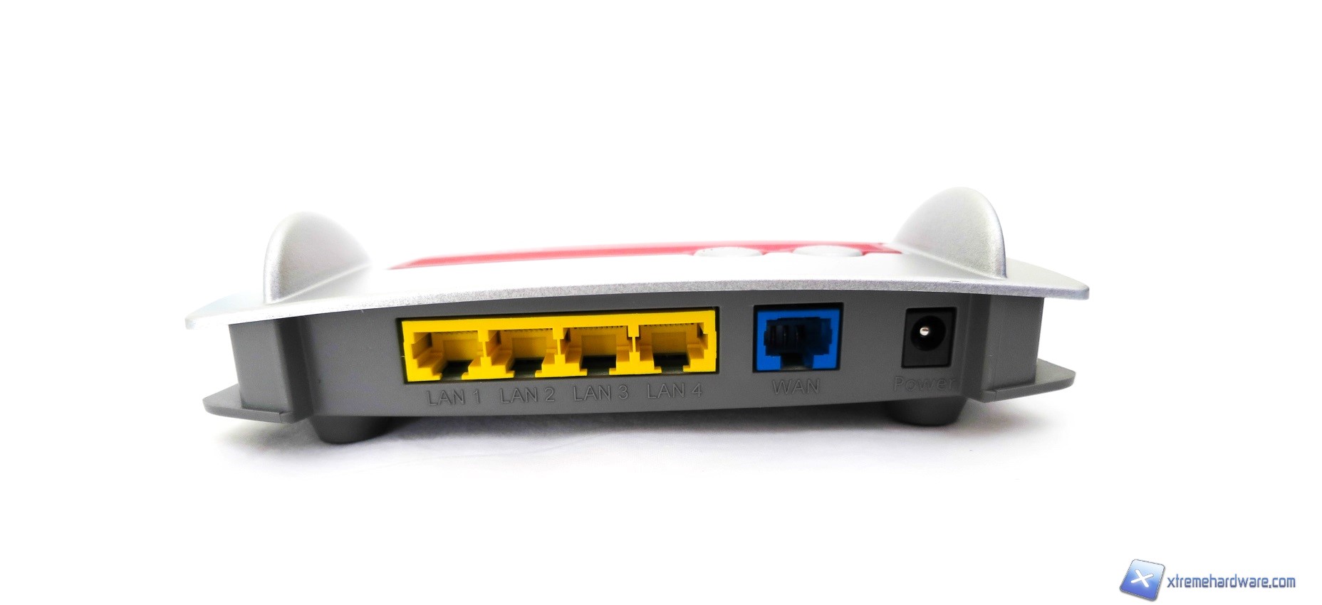 Portandoci nel retro del router FRITZ!Box 4020, troviamo finalmente la dotazione di ingressi presenti. Al solito partendo con ordine, da sinistra a destra, troviamo quattro ingressi RJ-45 in standard 10/100 (quindi non Gigabit LAN e privi di LED di stato) di colore giallo, l’ingresso WAN di colore blu ed infine il connettore per l’alimentatore a 12V. Avrete immediatamente notato come sia assente un tasto di accensione/spegnimento. Per alcuni non sarà un problema in quanto spesso prodotti simili vengono posti in una stanza/postazione accesa 24/24 ma per altri potrebbe essere limitante la non possibilità di spegnere il FRITZ!Box 4020 quando non ne avremo bisogno o al termine della nostra attività al PC. Seppur il FRITZ!Box 4020 assorba soltanto dai 2 ai 7 Watt, potrebbe comunque essere un dispendio energetico inutile per coloro che non sfruttano proprio tutte le caratteristiche offerte dal FRITZ!. Molti potrebbero dunque obiettare chiedendosi a che pro comprare un prodotto del genere se non si dovessero sfruttare tutte le caratteristiche offerte e si potrebbe rispondere che ognuno può trovare interessante utilizzare anche solo una, due funzioni.