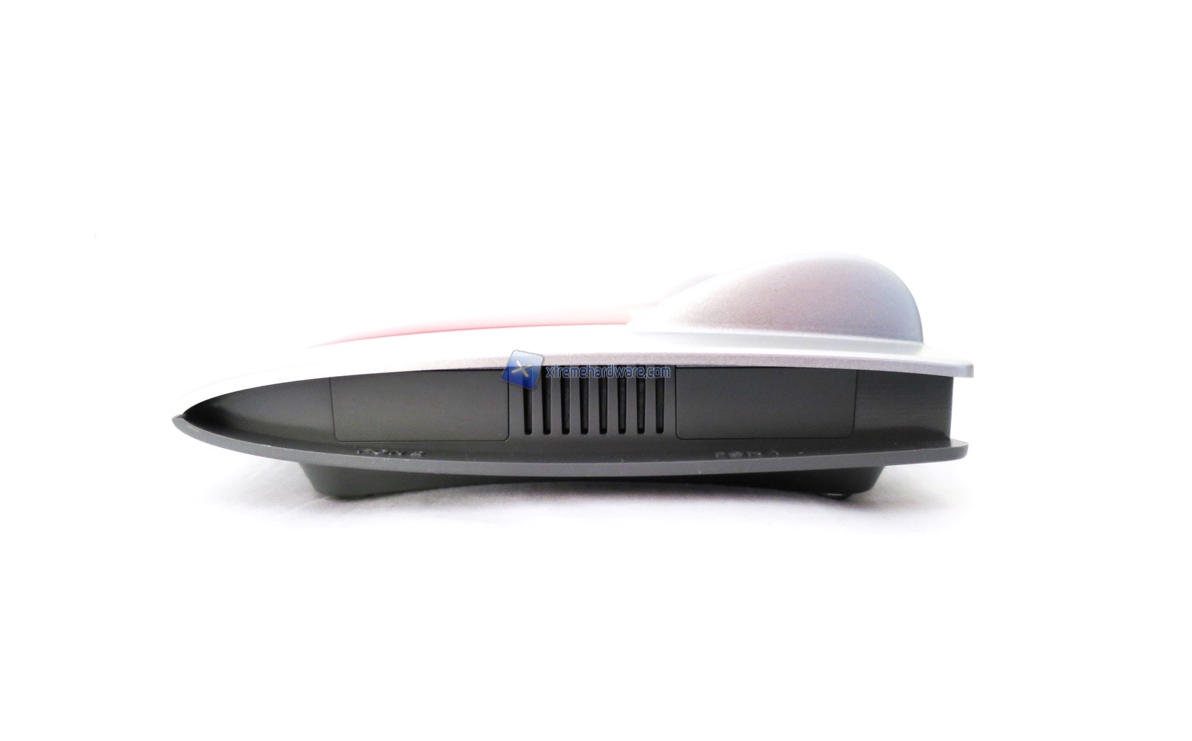 Capovolgendo il prodotto troviamo anche qui un design classico caratterizzato per la presenza centrale superiore ed inferiore di griglie per l’aereazione mentre ai lati troviamo due rialzi in plastica unificati con quattro piedini in gomma e due fori per poter fissare a seguire il prodotto a muro con viti da acquistare a parte.