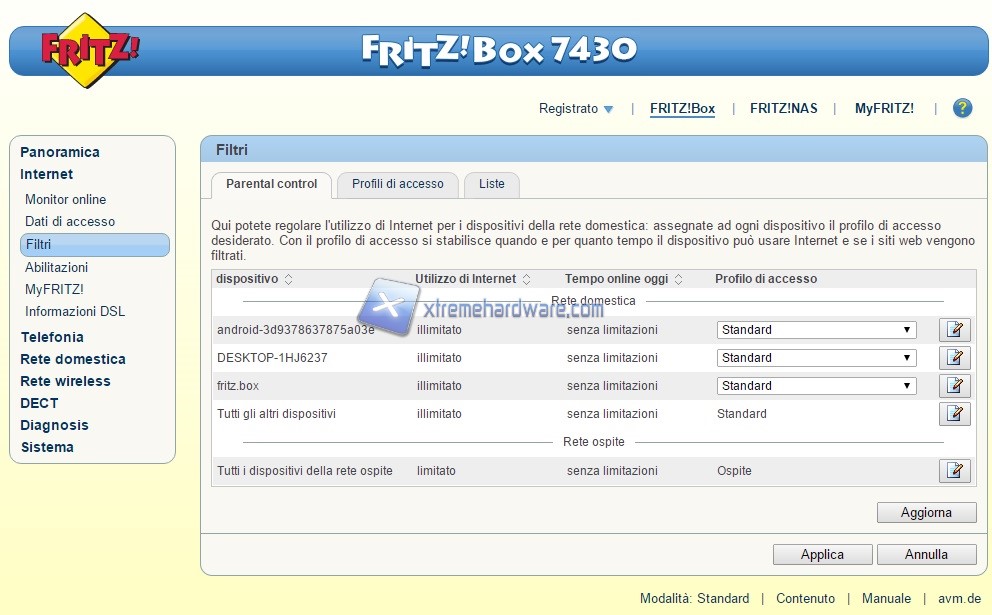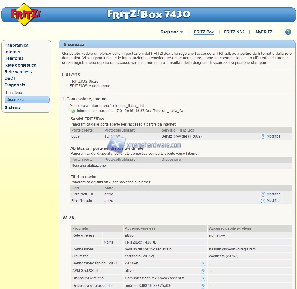 A riavvio completato, saremo finalmente nel pannello di gestione del FRITZ!Box 7430 e potremo agire su ogni singola impostazione offertaci dal cosiddetto FRITZ!OS.