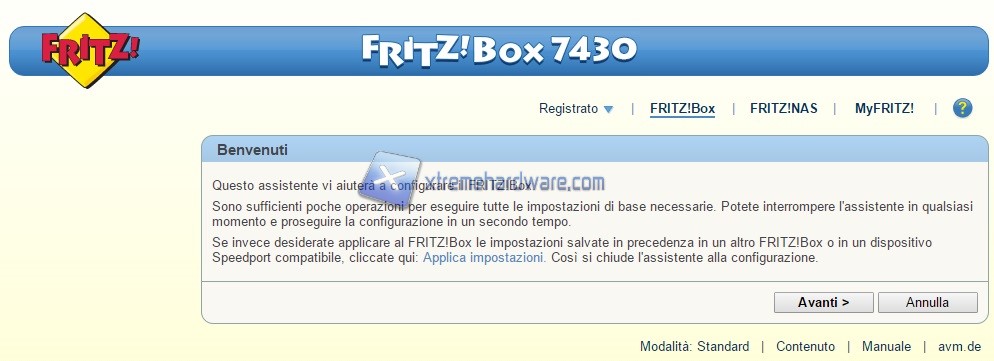 Bene, ora che avrete eseguito tutti i collegamenti, è il momento di collegarci all’indirizzo del pannello del FRITZ!Box 7430. In questo caso dal browser dovrete digitare l’indirizzo http://fritz.box e verrete rimandati alla pagina iniziale del Modem-Router. Nel caso in cui tramite questo indirizzo non dovreste riuscire a collegarvi al router, dovrete cercare l’indirizzo nelle proprietà della scheda di rete.