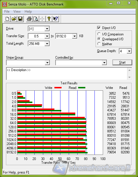 ATTO è un benchmark gratuito che esegue dei semplici test in lettura ed in scrittura in modalità sequenziale adoperando una Queue Depth (file in coda) di 4.