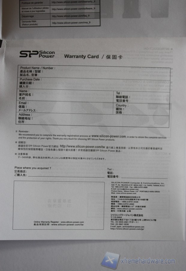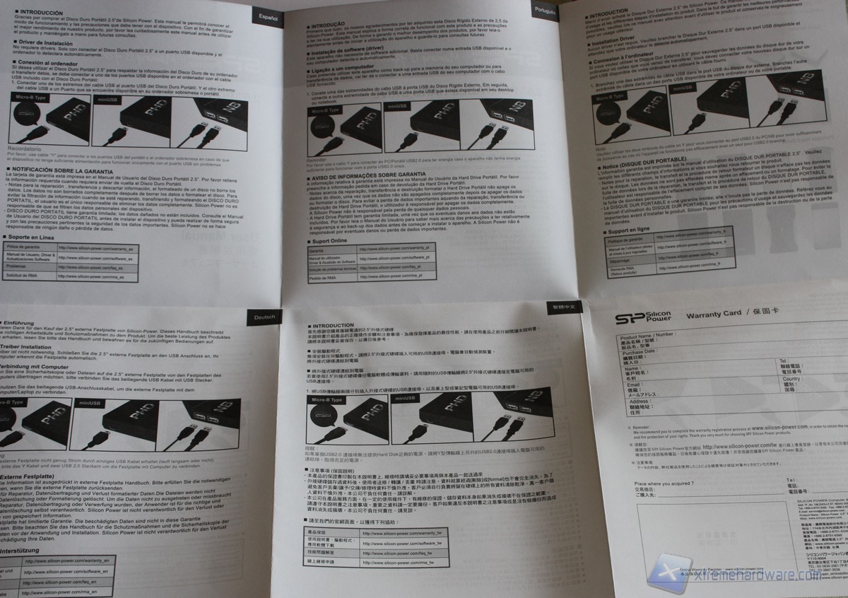 Ecco di seguito le immagini del manuale e della scheda di garanzia del Silicon Power Diamond D05.